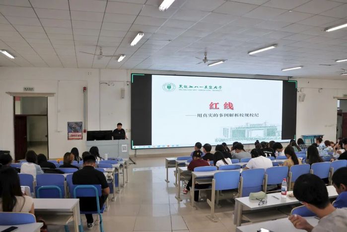 为深入推进新生入学教育工作,增进2025级新生对学校规章制度的理解,提升自我管理与自我约束的能力,营造良好的教学、学习和生活环境,推进学院学风建设,9月14日,学院开展2025级新生校纪校规教育。本次活动由学院辅导员焦祺洋主讲,全体2025级新生参加。