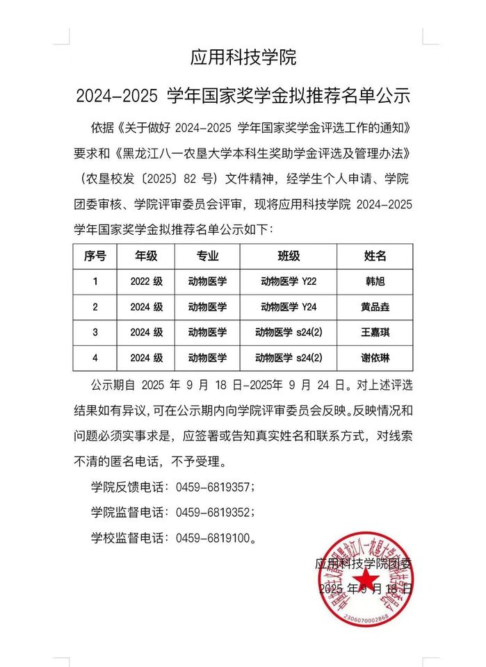 云顶国际2024-2025 学年国家奖学金拟推荐名单公示