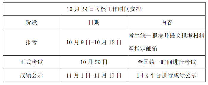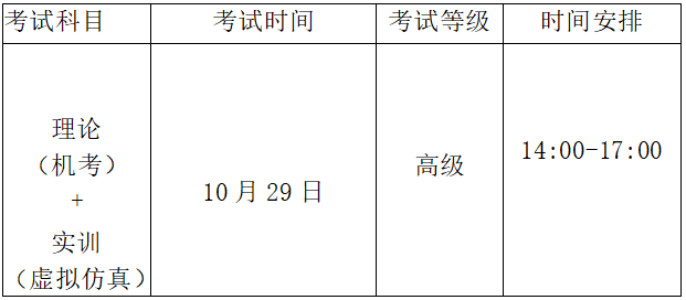 本校考核时间定于2025年10月29日,考核为上机考试,理论与实训联考(高级180分钟)。具体时间安排如下: