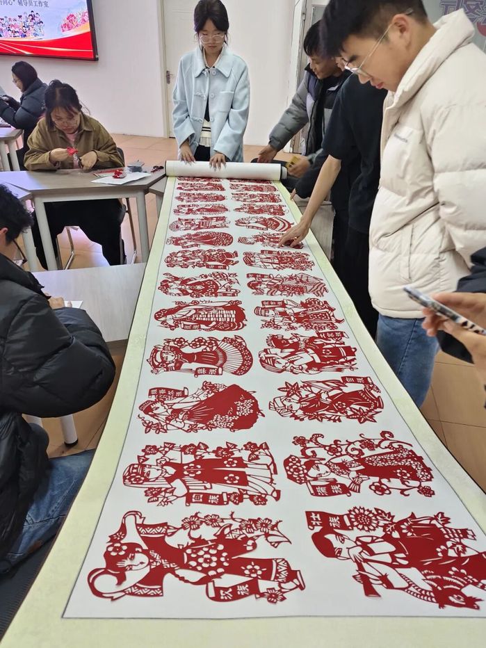 讲解结束后,同学们共同欣赏了汇聚各民族特色的剪纸卷轴。大家纷纷赞叹中华民族文化的多样性,更在潜移默化中增强了对中华民族共同体的高度认同与深切情感归属。